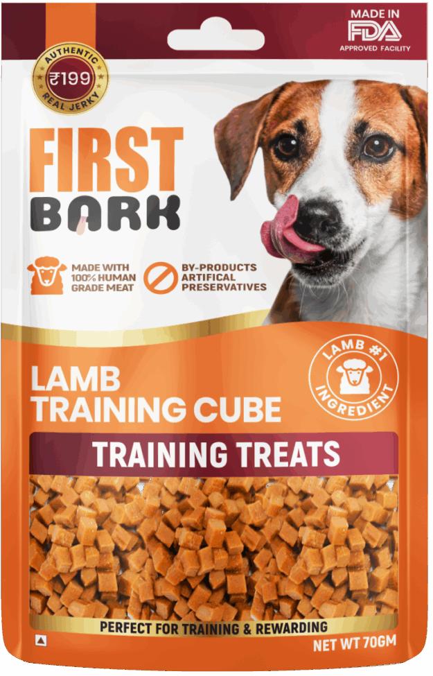 First Bark Lamb Training Cube Dog Treats (70gm) are soft, protein-packed cubes designed for effective training and rewarding. Made from premium lamb, these nutritious treats are ideal for dogs of all breeds and sizes