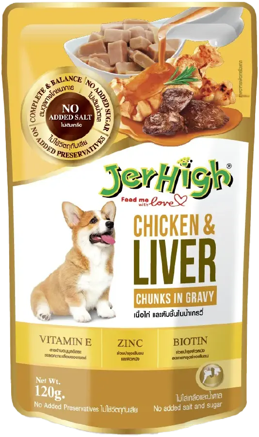 JerHigh Wet Dog Food – Chicken and Liver in Gravy is a premium dog food enriched with vitamin E and iron that makes a perfect choice for your pooch.