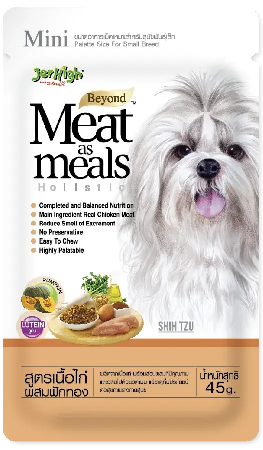 Jerhigh Meat As Meals holistic Completed and Balanced Nutrition Treat with Main Ingredients Real Chicken Meat Reduce the Smell of Excrement with no preservative and is easy to chew and Highly Palatable. Features 18 kinds of Vitamins and Mineral Mineral from volcano Beta Glucan Inulin Glucosamine Chondroitin, Sulfate Omega 3,6Caution Given in suitable proportion with the weight and age of the pet Keep the product at an average temperature and not exposed to sunlight or humidity Make sure pets drink enough water daily Check expiration date before given Weight: 500 g Caution Given in suitable proportion with weight and age of pet Keep the product in average temperature not expose to sunlight or humidity Make sure pets drink enough water daily Check expiration date before given.
