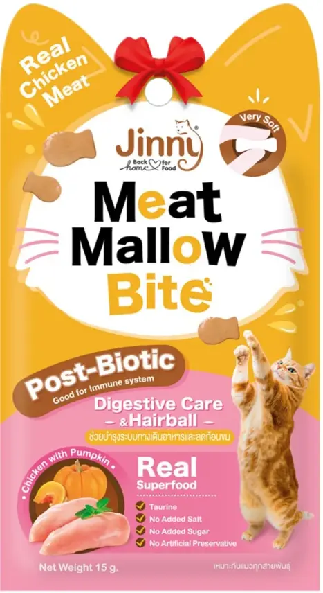 JerHigh Jinny Cat Treats, made with real chicken for protein and pumpkin for fiber to support digestive health. These soft, chewy bites are packed with essential vitamins and minerals, promoting overall well-being. The savory flavor of chicken and sweet pumpkin is irresistible, making them perfect for cats of all breeds and ages. With a convenient 15g pack, they’re great for on-the-go or at-home snacking. A nutritious, guilt-free treat to keep your cat happy, healthy, and satisfied!