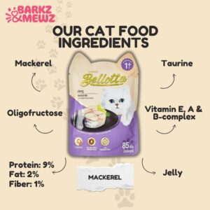Bellotta Mackerel in Gravy Cat Food is a complete food for your cat. It supplies all the essential nutrients the cat needs to lead a healthy life. Taurine helps in keeping the heart healthy. Vitamin A helps strengthen the eyesight of the cat. Tuna enhances the taste of food. In addition, it is present in food as a light brown kibble. The natural oil brings health and shine to the cat’s coat. Some cats are prone to urinary tract infections, diet preparation will also take care of urinary tract health. Crunchy Kibbles are designed to maintain oral health by rubbing plague and tartar off a cat’s gums and teeth. Now you can maintain your love and affection for your cats at the optimum level.