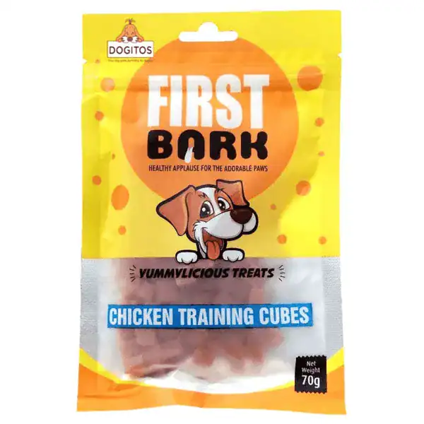 First Bark Chicken Training Cubes Dog Treat is a Customized nutrition Solution For Our Furry Friends, We have Made it a Scrumptious meal With Zero Fillers and 100 % Safe .Our Endeavour is to create a healthy treats for an enriching experience