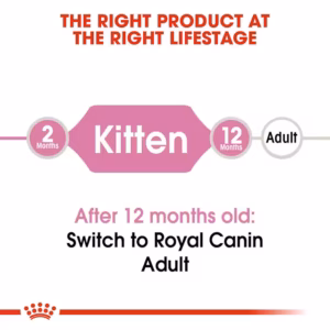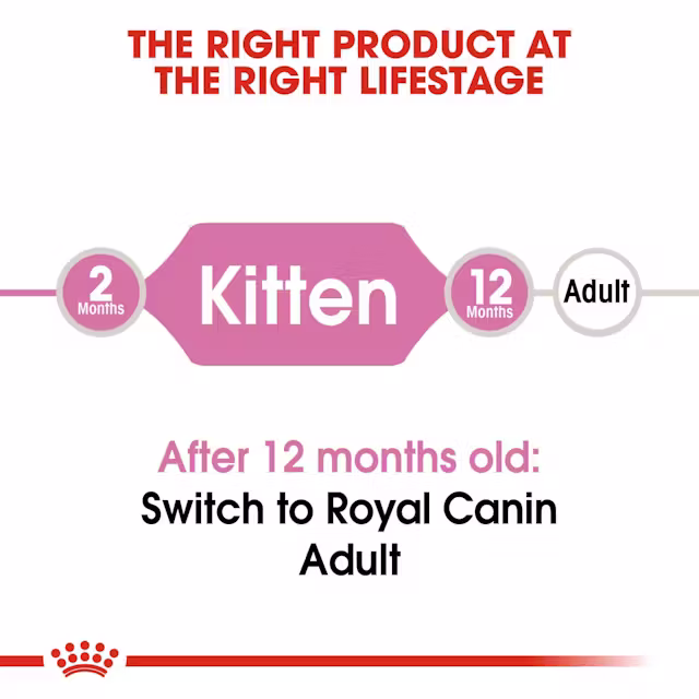 ROYAL CANIN® Kitten is suitable for kittens up to 12 months old and has an enhanced digestive tolerance inclusion of L.I.P – a protein selected due its 90% digestibility rate.