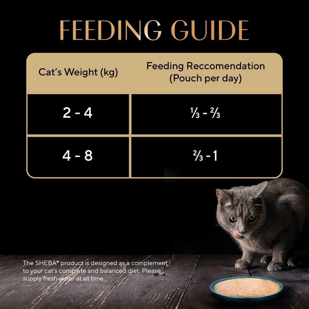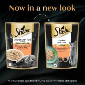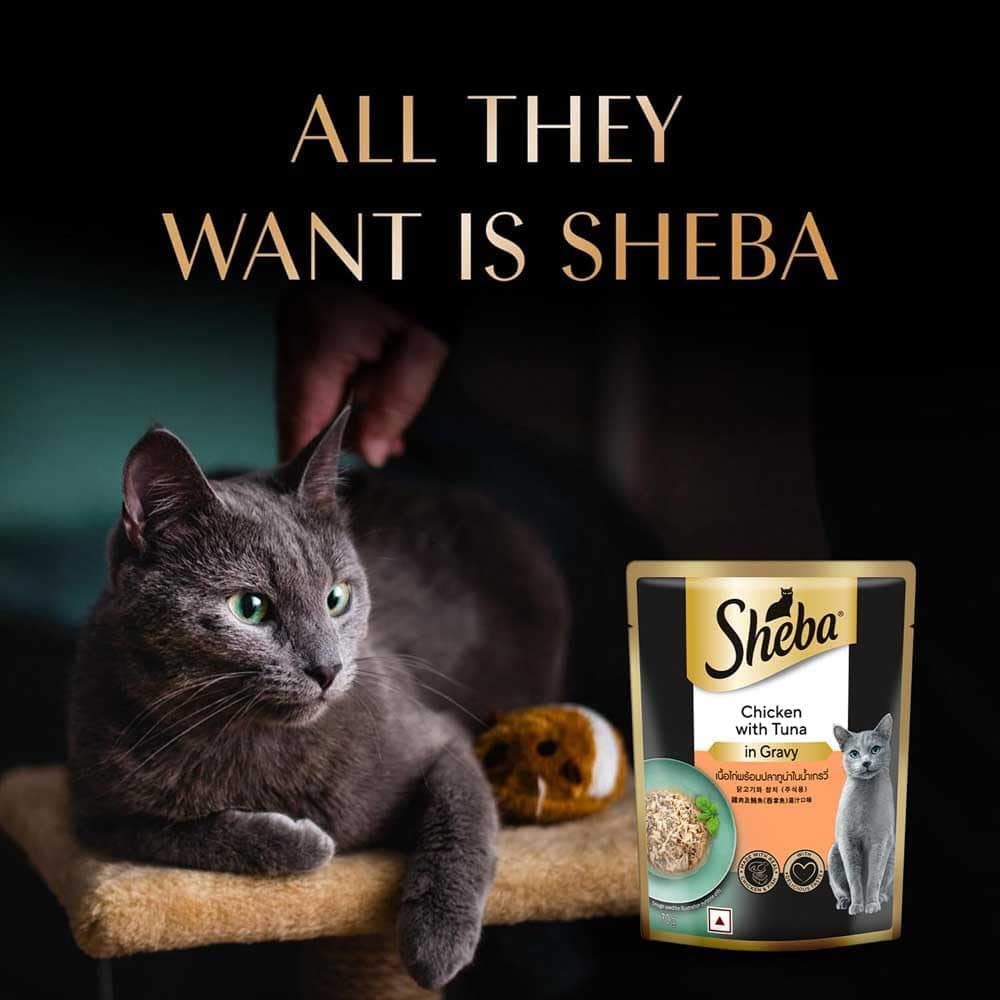 Sheba® Chicken with Tuna in Gravy is rich and premium food for your adult cat (+1 years). Your adult pet cat adores the taste of real chicken with tuna and Sheba® ensures your cat savors every bit of it through its wet format i.e. more palatable and helps add water for cats. This wet cat food is designed as a complement food to your cat’s complete and balanced diet. The Sheba® easier to lick meal is high in protein and also contains essential vitamins and minerals, so this premium palate for your cat delivers a mouth-watering feast, without compromising on the goodness.