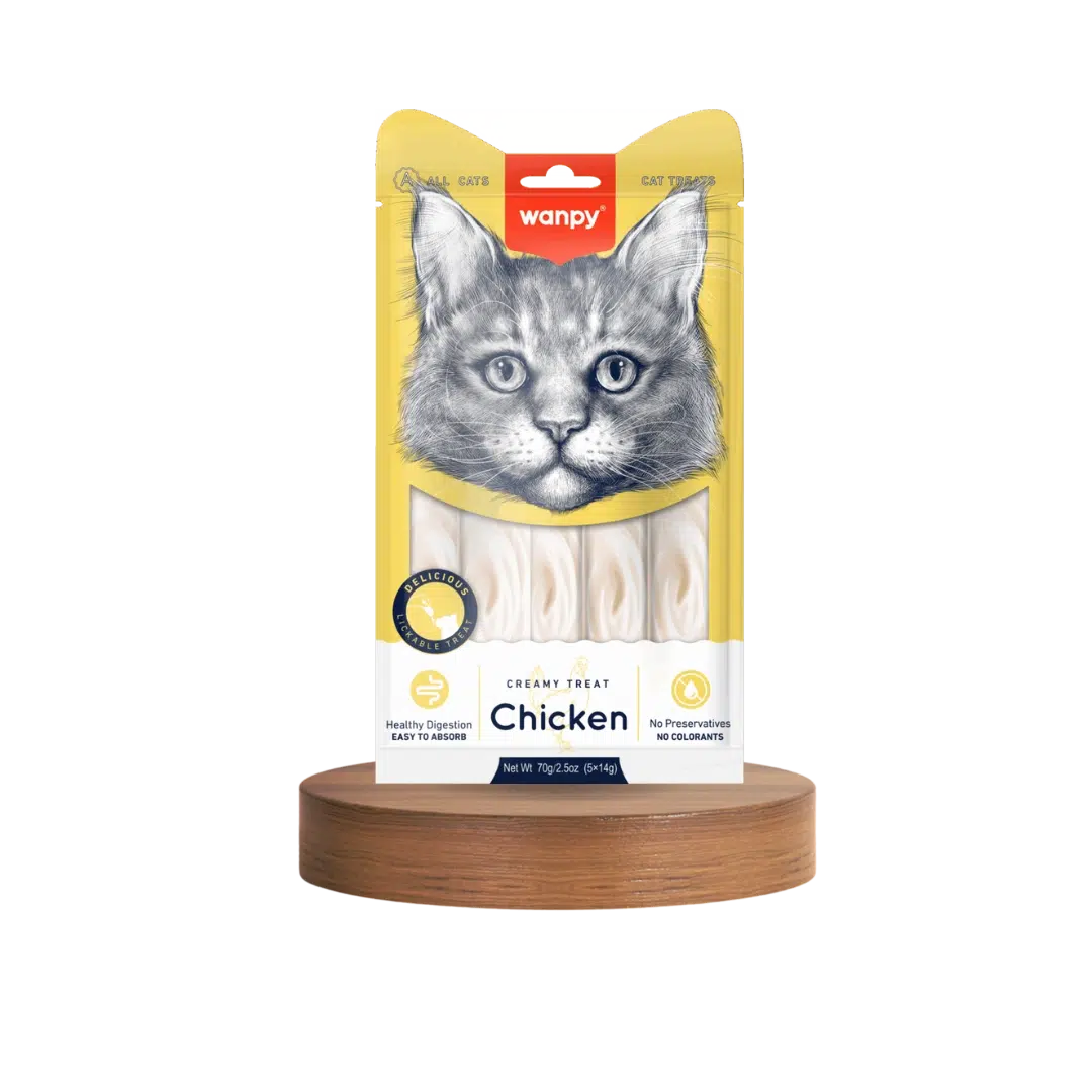 Wanpy Chicken Cat Creamy Treat – is a premium lickable snack made from high-quality chicken to offer a nutritious and irresistible flavor. Its smooth texture makes it ideal for handfeeding, rewarding, or topping regular meals. Packed with protein, essential nutrients, and moisture, it supports hydration and overall well-being. Free from grains, preservatives, and artificial colors, this treat is a safe and healthy indulgence that cats love. Perfect for encouraging fussy eaters and strengthening your bond with your feline friend.