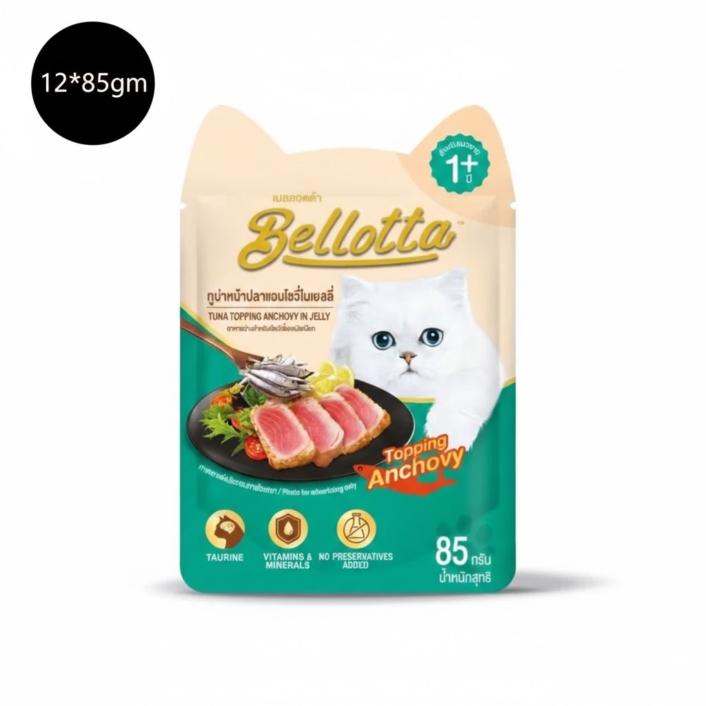 Bellotta Wet Food for Adult Cats & Kittens — Tuna Topping Anchovy In Jelly 85gm
