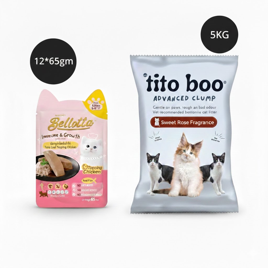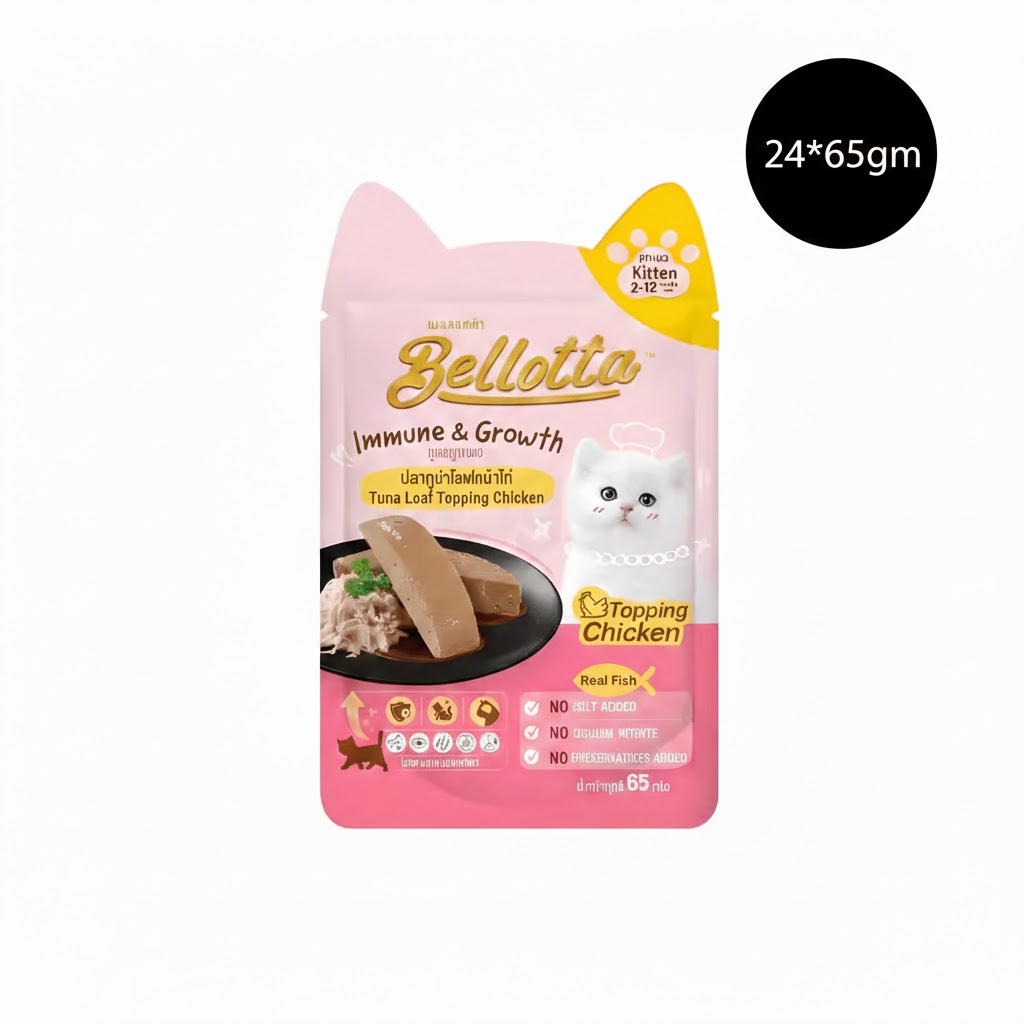 Bellotta Kitten Pouch Immune & Growth Tuna Loaf Topping Sardine – 65g is available at I Love Pets in Nehru Colony, Dehradun. This specially formulated wet food for kittens provides a nutritious blend of tuna and sardine in a flavorful loaf topping. The rich combination of high-quality protein helps support your kitten’s growth, immune system, and overall health