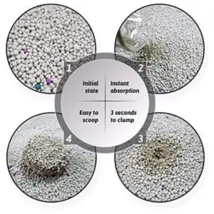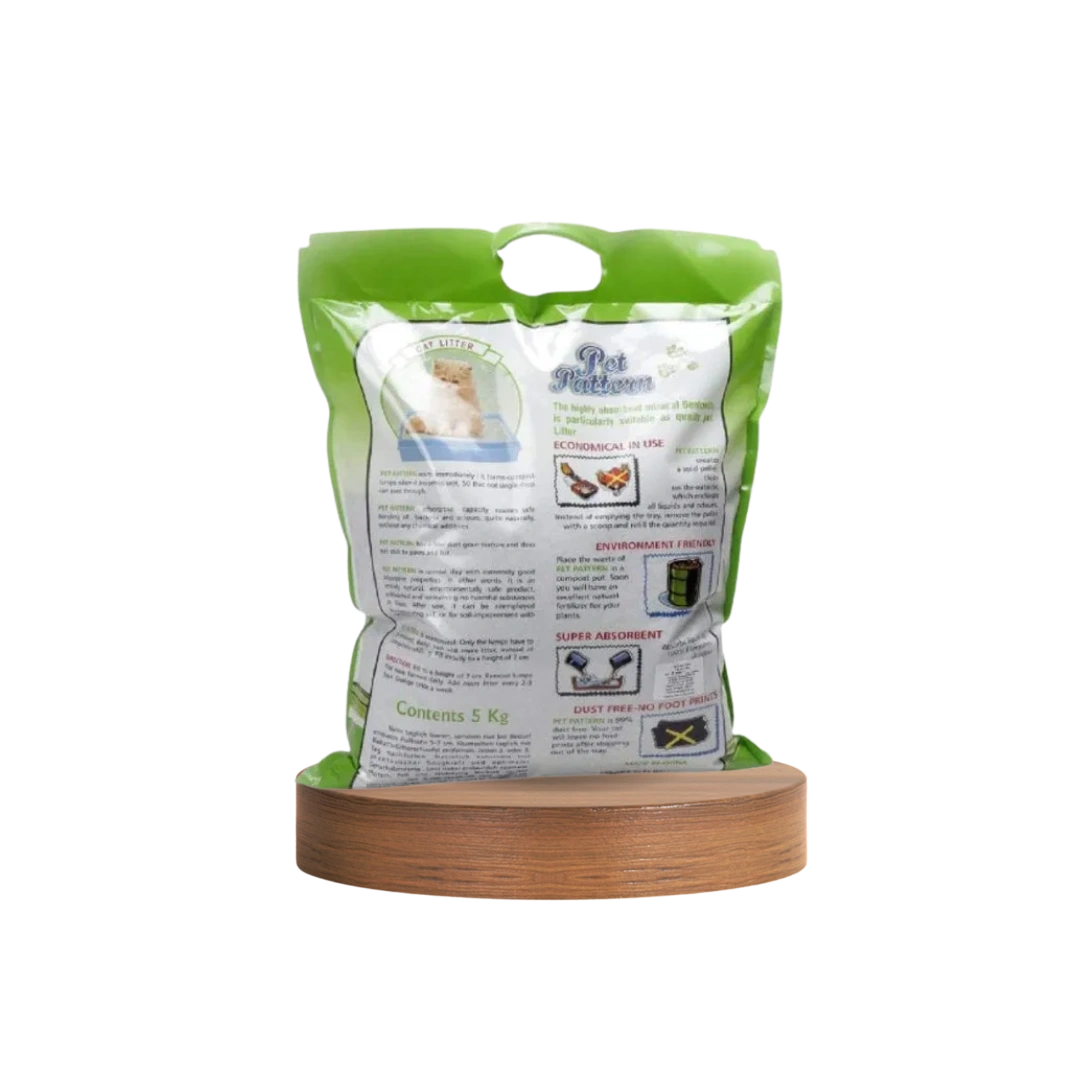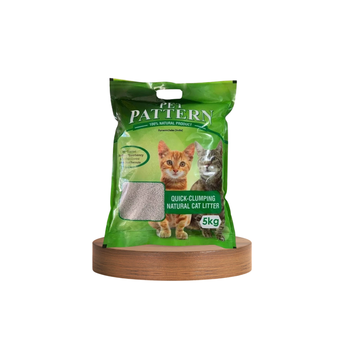 Pet Pattern Natural Clay Scented Cat Litter. It has fine texture of the natural bentonite clay granules is soft on paws and gives your cat a naturally soft feel. Having a high liquid absorption rate, the litter clumps quickly and forms clumps that can be easily scooped out without removing the rest of the litter. It also has anti-odor properties and is a scented natural mother earth clay flavor.