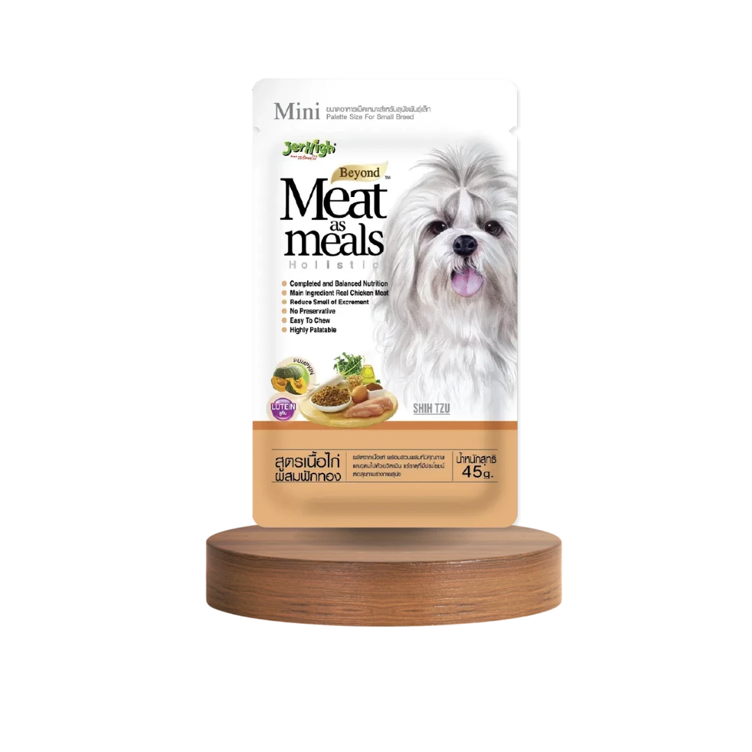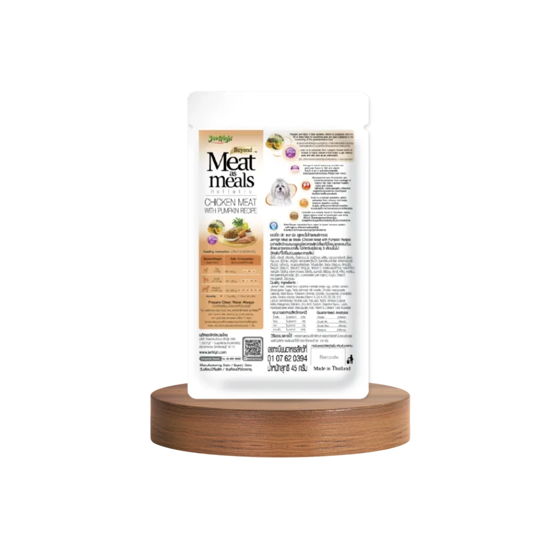 Jerhigh Meat As Meals holistic Completed and Balanced Nutrition Treat with Main Ingredients Real Chicken Meat Reduce the Smell of Excrement with no preservative and is easy to chew and Highly Palatable. Features 18 kinds of Vitamins and Mineral Mineral from volcano Beta Glucan Inulin Glucosamine Chondroitin, Sulfate Omega 3,6Caution Given in suitable proportion with the weight and age of the pet Keep the product at an average temperature and not exposed to sunlight or humidity Make sure pets drink enough water daily Check expiration date before given Weight: 500 g Caution Given in suitable proportion with weight and age of pet Keep the product in average temperature not expose to sunlight or humidity Make sure pets drink enough water daily Check expiration date before given.