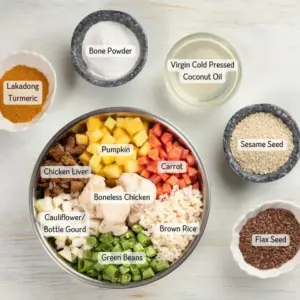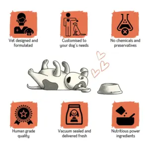 Most popular meal! Containing a mix of Chicken, vegetables and our power ingredients, it is delicious mix of nutritionally balanced, highly palatable fresh food. Rich in protein, calcium, Omega 3 fatty acids and essential minerals, the meaty meal contains a powerhouse of essential nutrients needed by a dog.