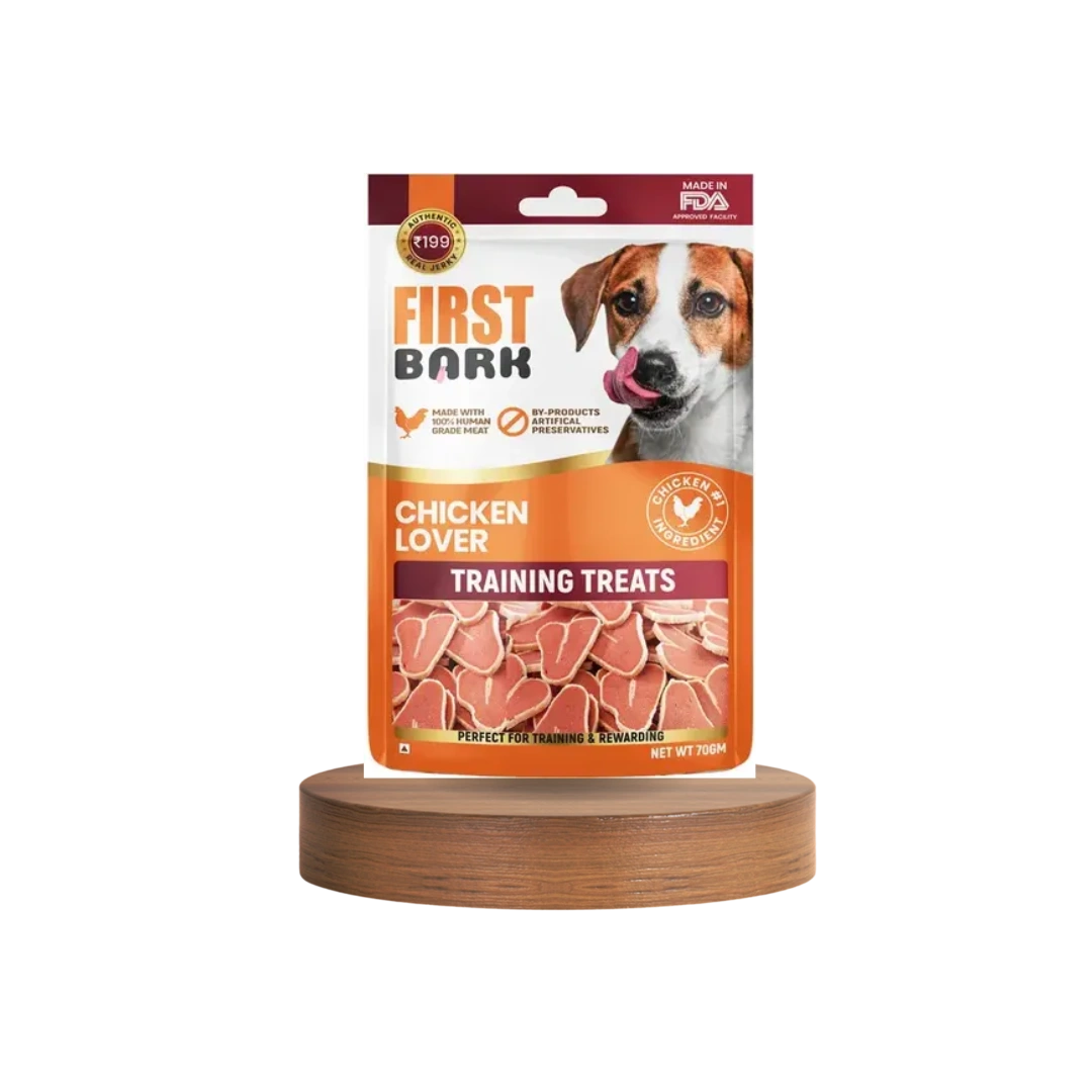irst Bark: Chicken Training Treats are expertly crafted to support effective training with every bite. Made from 100% human-grade chicken, these savory, protein-rich treats help keep your dog energized, attentive, and motivated during training sessions. Bite-sized and flavorful, they’re the perfect choice for quick rewards that reinforce good behavior. Backed by decades of jerky expertise through our partnership with Yantai China Pet Food, First Bark ensures that each treat is not only delicious but purposeful—supporting your dog’s health and learning at every step.