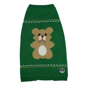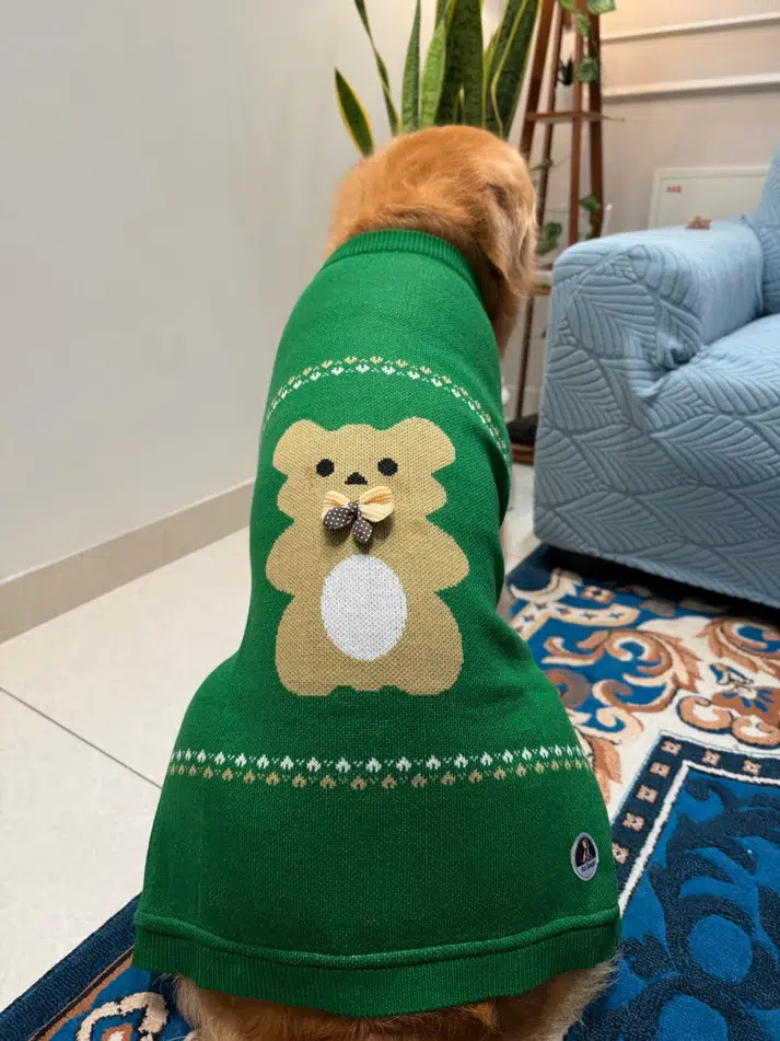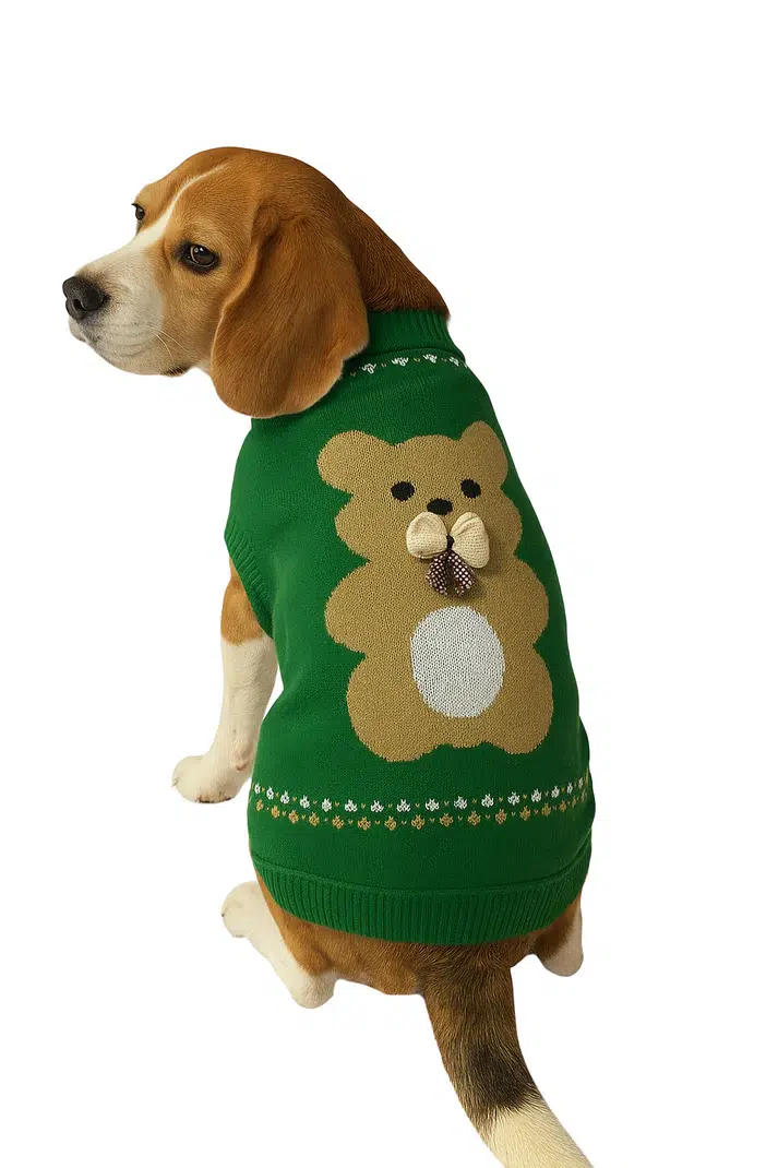 Keep your furry friend warm and stylish this winter with our soft knit dog sweater. Designed in a deep green shade with a playful teddy bear motif, this sweater not only protects against chilly winds but also adds an adorable touch to your pet’s wardrobe. The lightweight, stretchable knit ensures comfort, making it perfect for walks, outings, and cozy evenings at home.