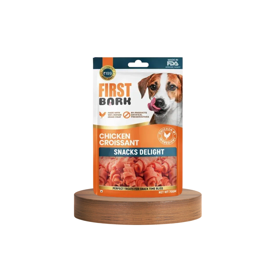 First Bark: Croissant-Shaped Chicken Treats are thoughtfully crafted to offer a delicious and nutritious snack for your dog. Made with 100% human-grade chicken and shaped like a croissant, these treats are perfect for rewarding good behavior, satisfying mid-day cravings, or simply showing your dog some extra love. High in protein and low in fat, they support your dog’s overall health and well-being without any artificial additives or by-products. Whether used for training or casual snacking, First Bark delivers treats with purpose.