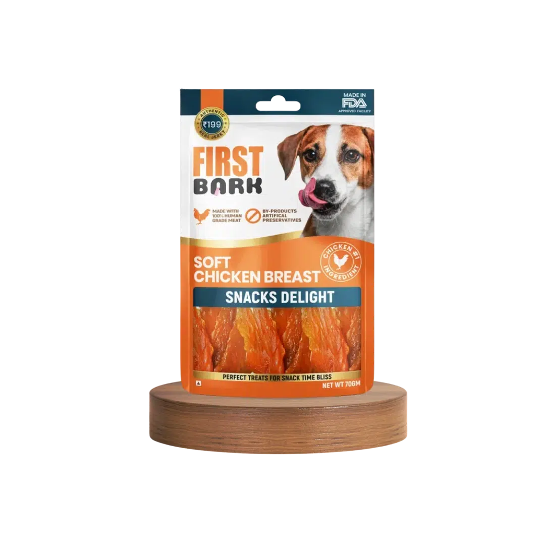 First Bark Soft Chicken Breast Delicious, Nutritious, Well-Balanced & Perfect Treat For Your Pet Chew Make Strong Teeth and Gums Ensure Good Overall Health of The Dog.