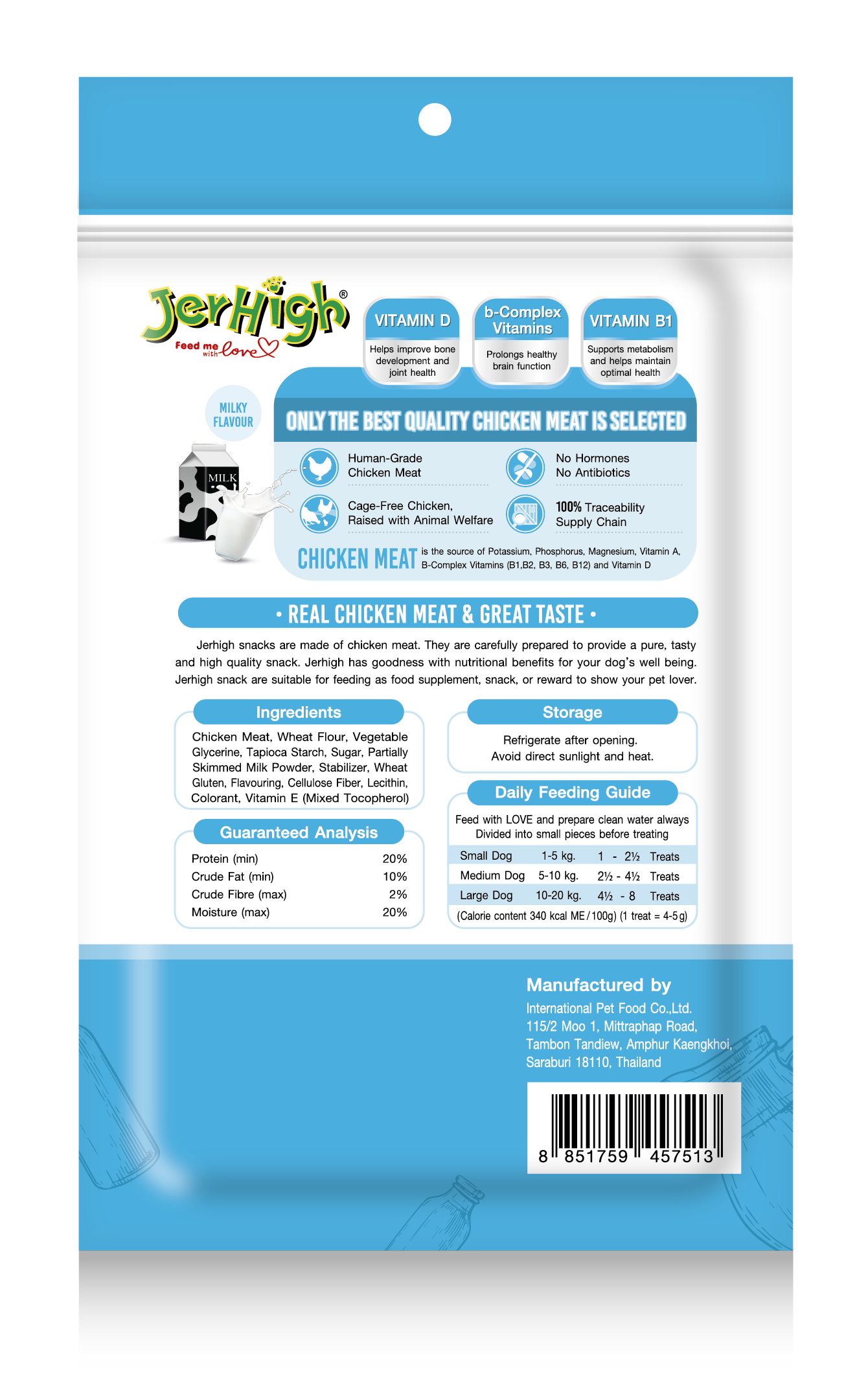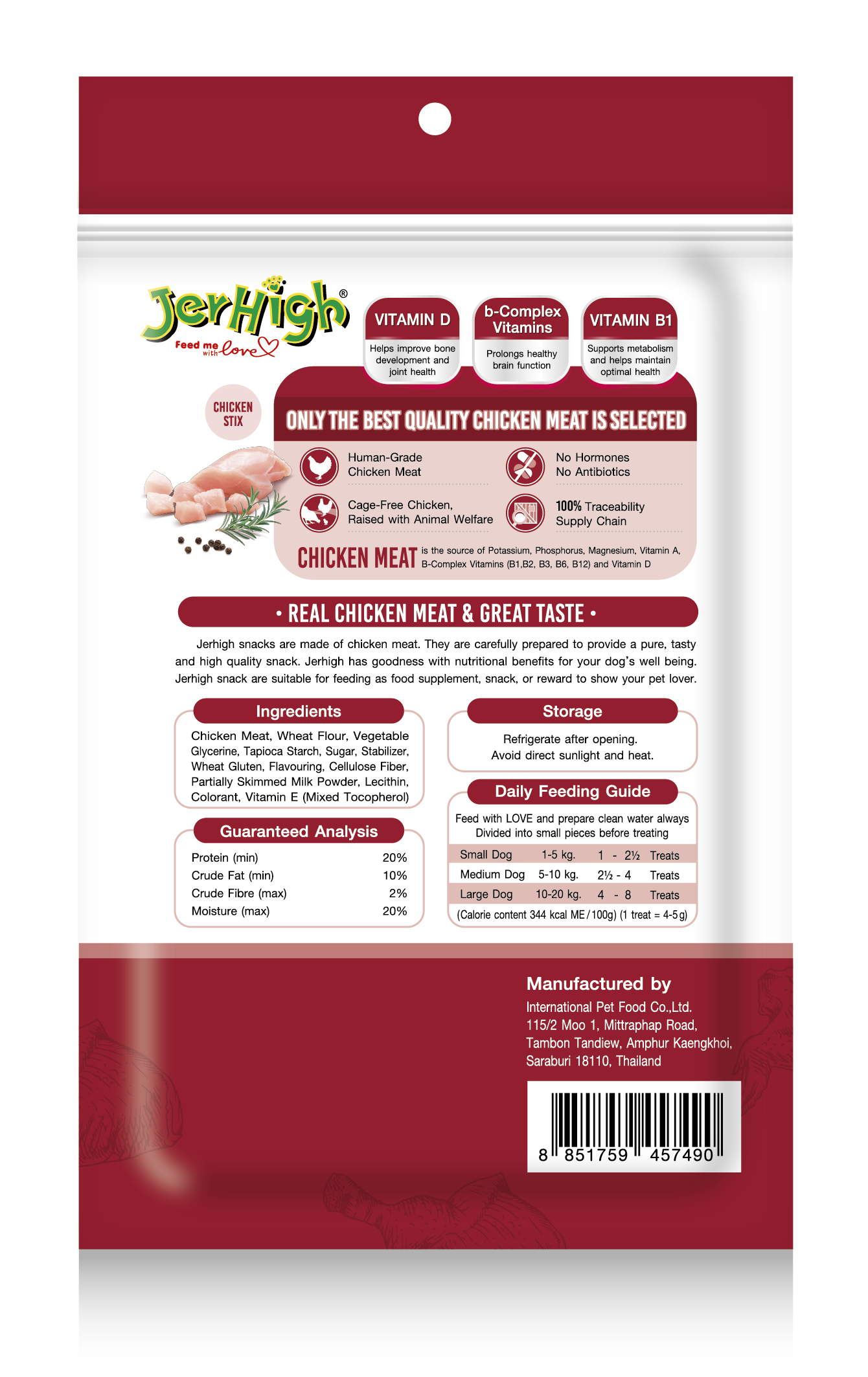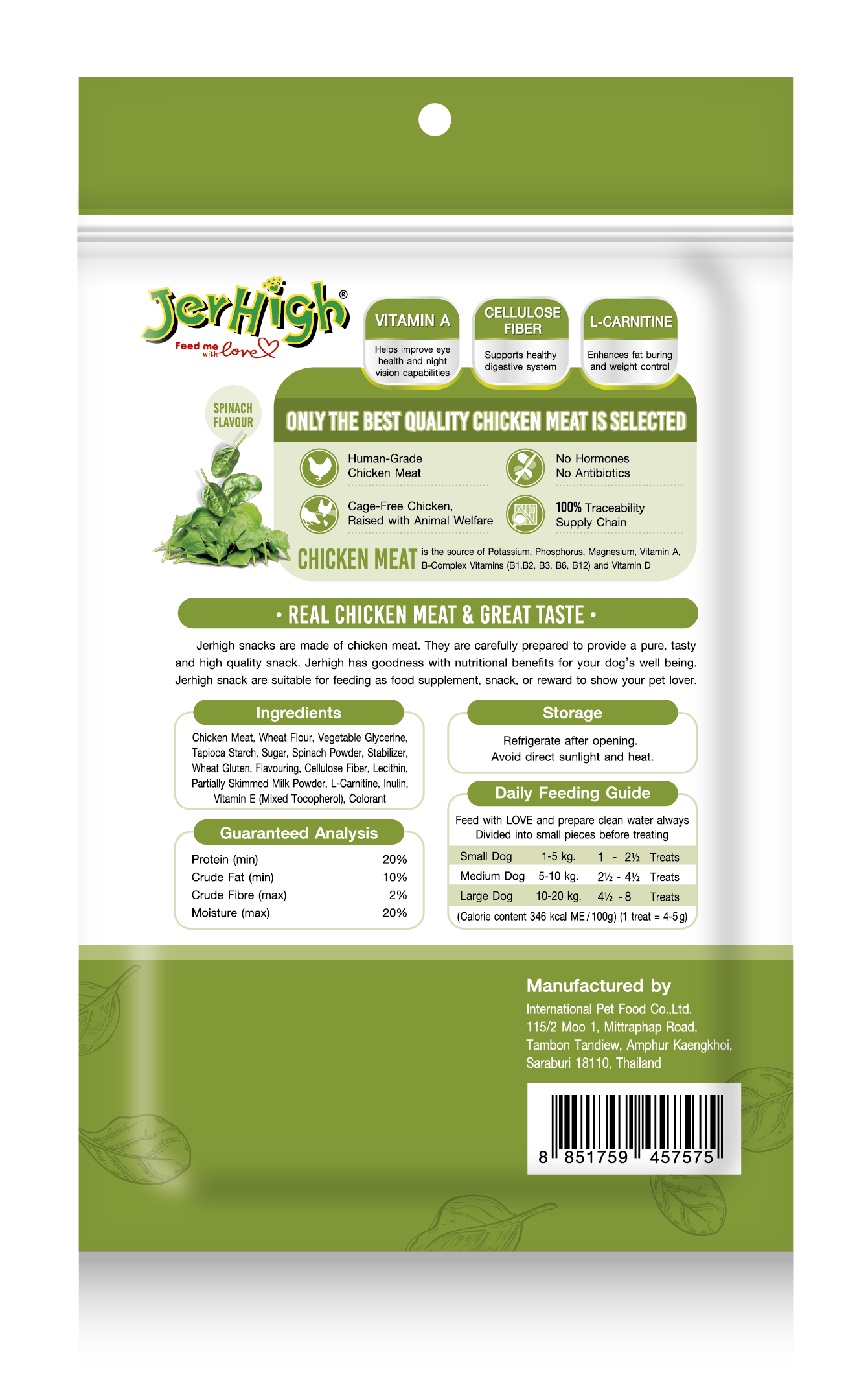 JerHigh Spinach Stick is made from real chicken and has been meticulously prepared by our highly experienced expert team.