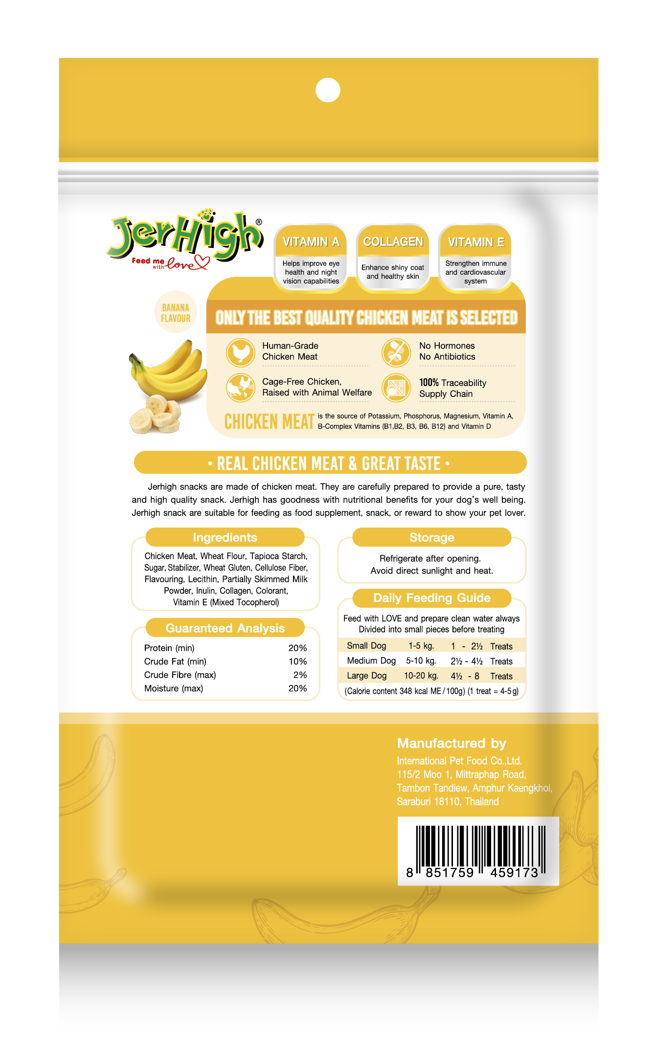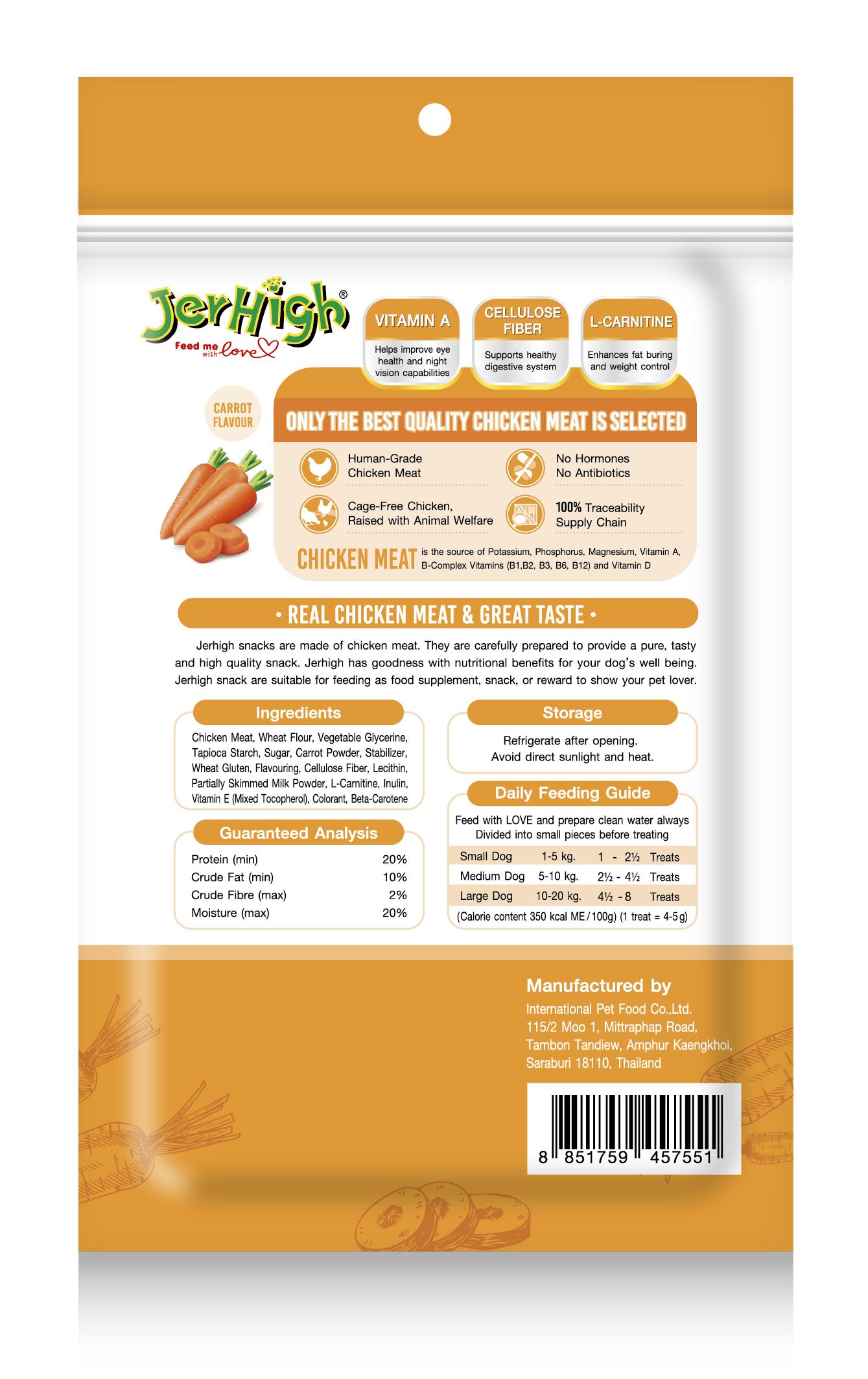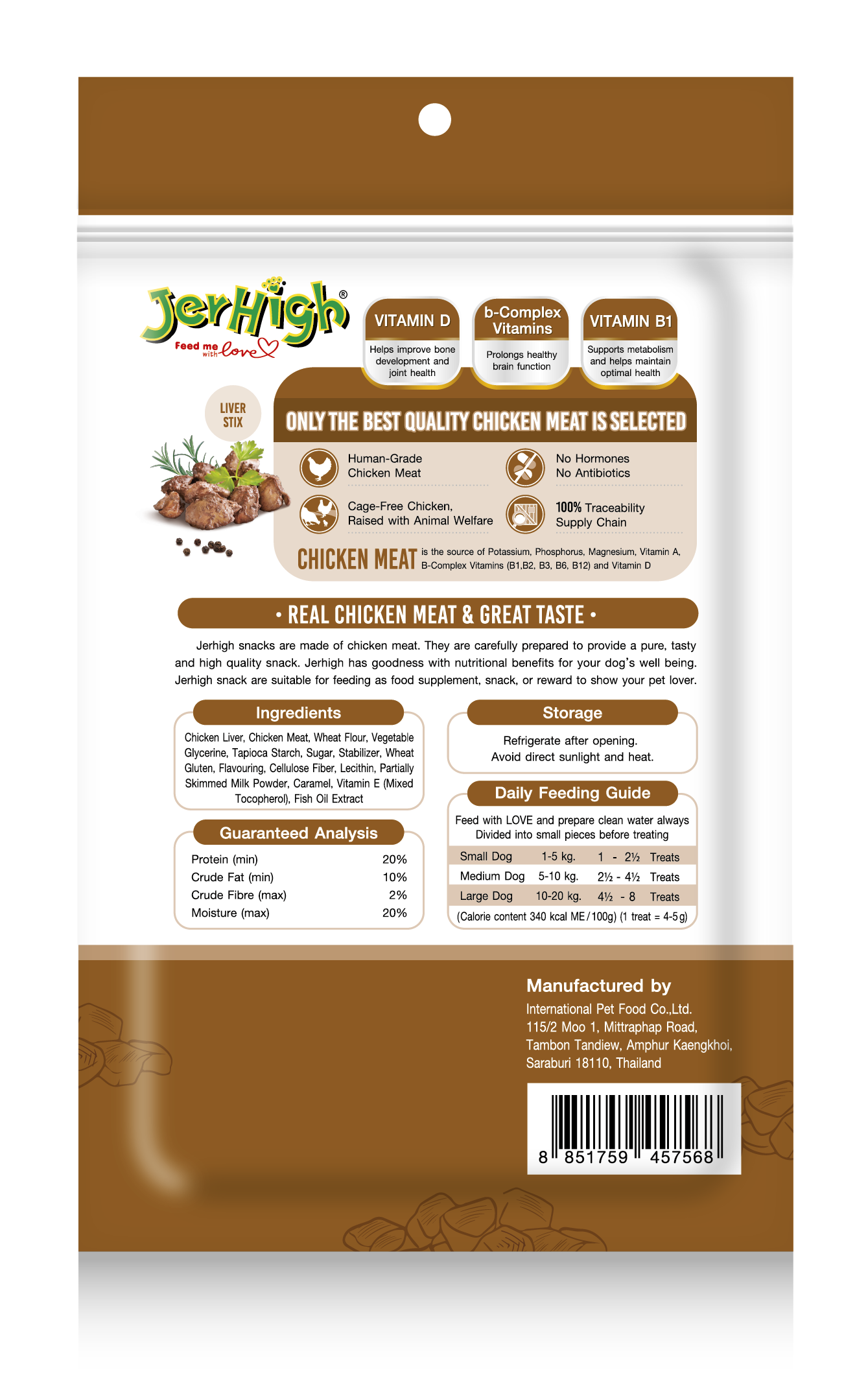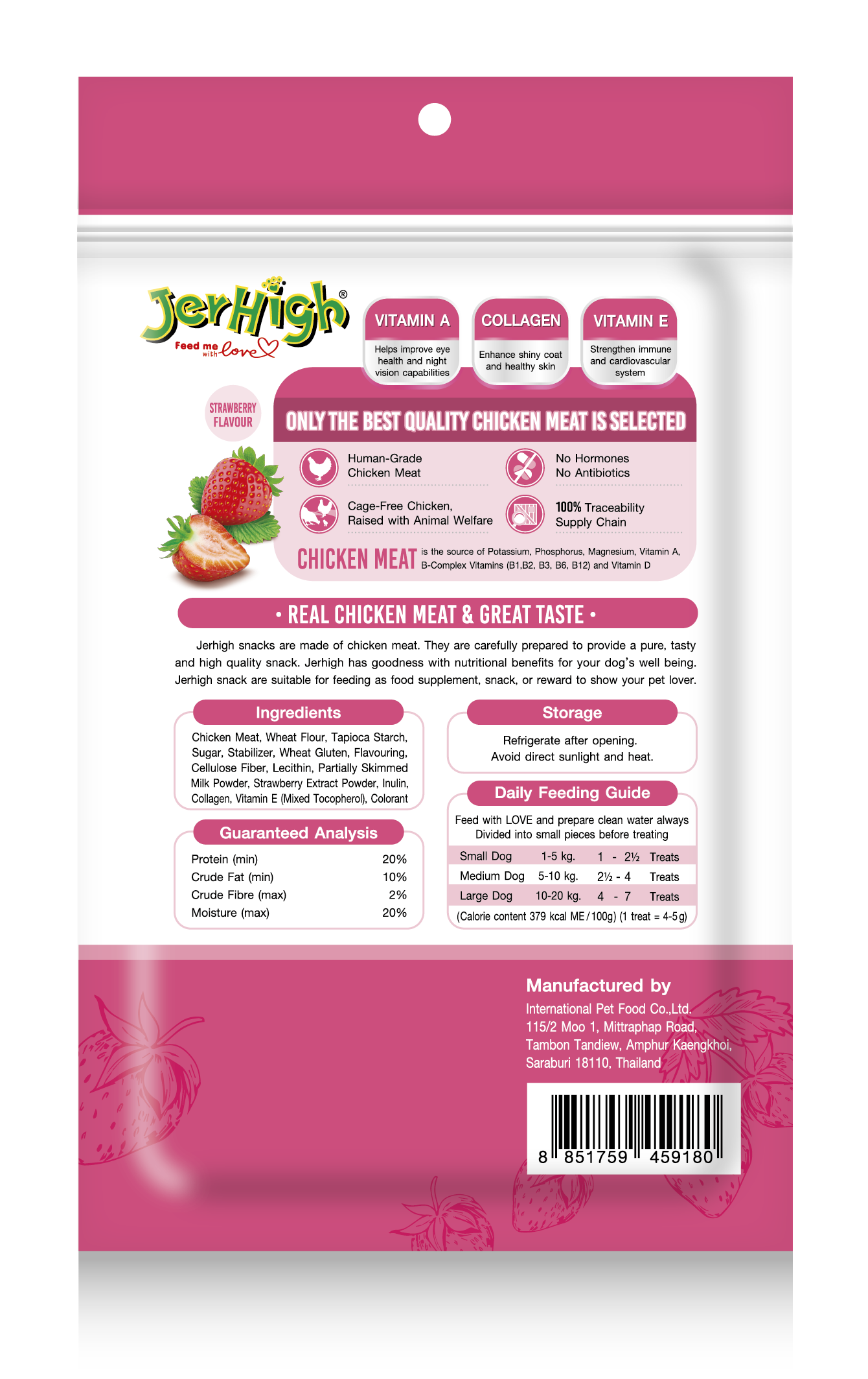JerHigh Spinach Stick is made from real chicken and has been meticulously prepared by our highly experienced expert team.